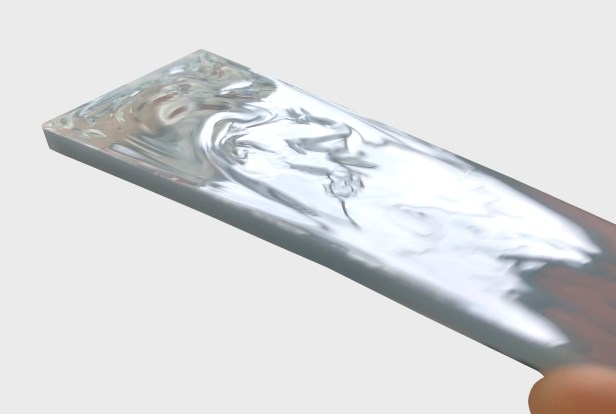 温かい状態のまま、すぐにライトに当てて硬化させると、このような模様が浮かび上がることがあります。